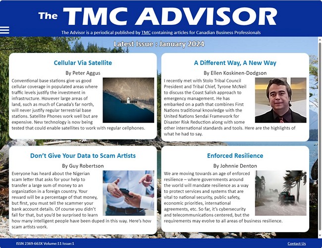 TMC works with Northern partners to deliver management consulting services across Canada‘s North: IT Planning, Emergency and Business Continuity Planning, Telecom and Radio designs and installation oversight, Information Management guidance, and training.